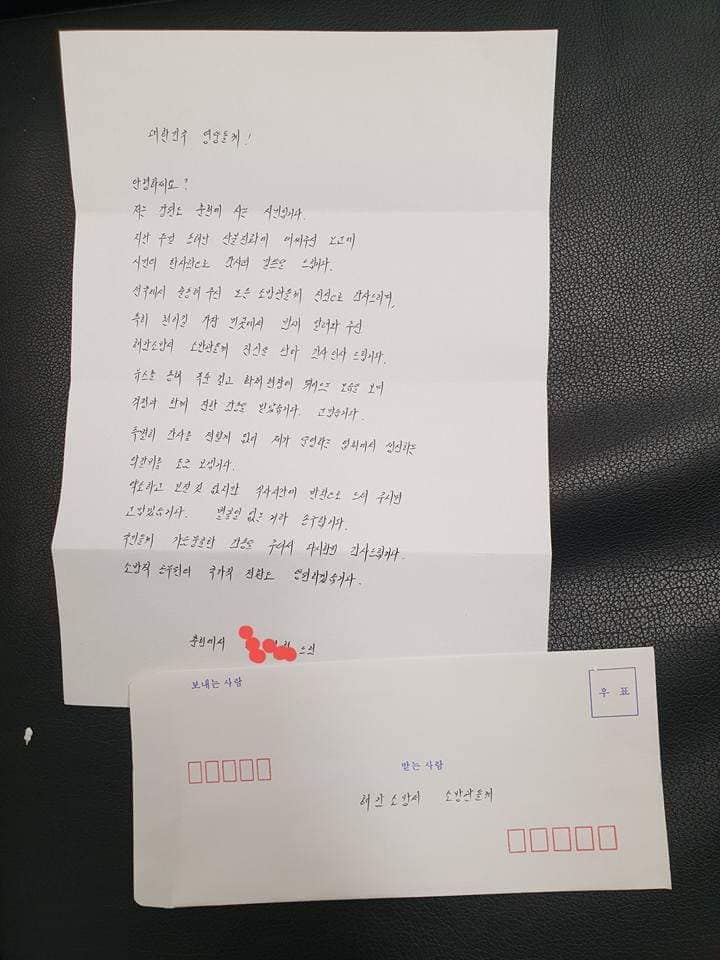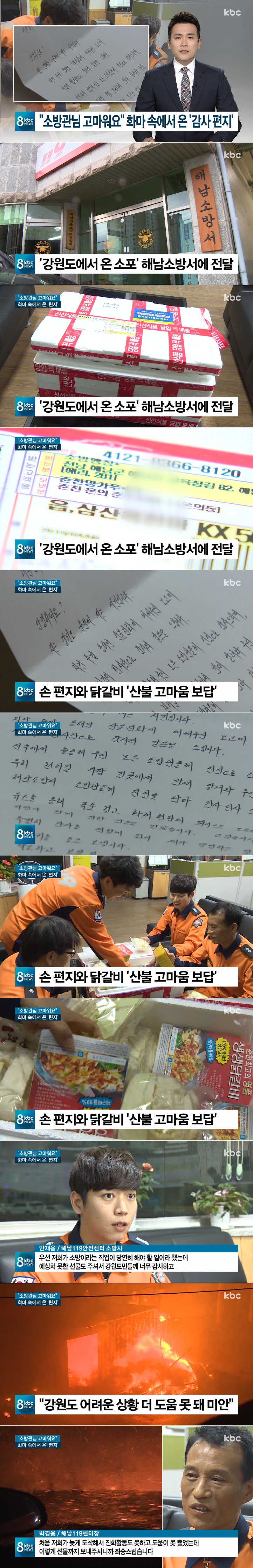 땅끝 해남소방서에 배달된 춘천 닭갈비와 손편지.jpg