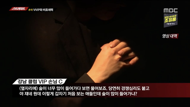 22일 방송된 시사 프로그램 MBC 스트레이트에서는 버닝썬에 드나들던 VIP들이 자행한 범죄에 대해 방송했습니다. 강남에 위치한 클럽 등지에서는 물뽕 등 마약을 이용해 여성을 실신하게 한 후 성폭행하는 범죄가 지속해서 일어났다고 밝혔습니다.한 강남 클럽 MD가 손님들에게 보낸 메시지에는 실신한 여성 사진과 함께 "놀러 와라"는 내용이 담겨있었으며, "약물 투입했다", "위에 손을 써놔서 상관없다"는 내용도 있었습니다.이렇게 마약류에 의해 정신을 잃은 여성들은 클럽 내부나 위층의 호텔, 혹은 오피스텔로 끌려가 성폭행당했고 클럽에서 직접 관리하는 오피스텔에서는 마약, 성폭행, 불법 촬영 등 각종 범죄가 일어났습니다. 클럽 측은 이곳에서 아무 흔적도 남지 않게 지우는 '소각팀'을 운영했습니다.. 이들은 마약류를 주입한 주사기, 마약 자체를 오피스텔 내부에서 가스레인지로 소각했고 휴지나 피 묻은 의류 등은 강남구를 벗어난 곳에 버렸습니다. 충격적인건 이곳에서 스너프 필름이 촬영됐다고 넌지시 암시하는 관계자의 말입니다. "여성을 묶어놓고 피를 흘리게 하고 혼절한 상태에서도 이 여성 얼굴에 경련이 일어났다. 이 모습을 촬영하던 의사로 보이는 사람 한 명이 지혈과 수혈을 능숙하게 했다" 말했습니다. 스너프 필름은 폭력, 살인, 강간 등의 모습을 담아 은밀히 유통시키는 영상을 의미합니다.